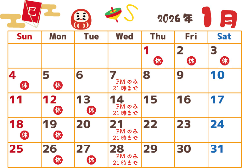 新年は、6日(火)からの診療です。