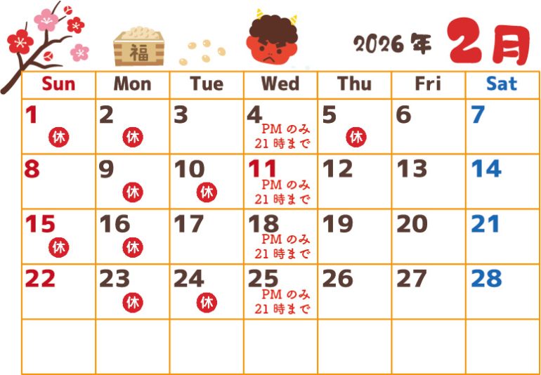 2月5日(木)は勝手ながら休診とさせていただきます。